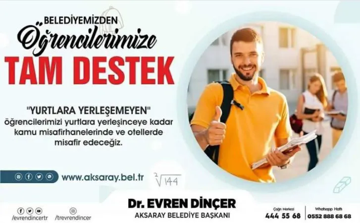 Okulların açılmasıyla birlikte öğrenciler okullarına dönmeye başlarken öğrenciler gittiği illerde yurt ve ev sorunu ile karşı karşıya kaldı. Yurtlarda kontenjanların dolu olması, ev kiralarının fahiş fiyatlara kadar çıkması öğrencileri zor durumda bıraktı. Ülke ve Aksaray ili genelinde öğrenciler günlerdir yetkililere sesini duyurmaya çalışırken Aksaray Belediyesinden öğrencilerin içini ferahlatan haber geldi. Aksaray üniversitesini kazanıp şehre gelen öğrencileri için kamu kurumlarının misafirhanelerinde ve otellerinde ağırlayabileceklerini açıkladı. Aksaray Belediye Başkanı Evren Dinçer sosyal medya hesabından yaptığı açıklamada