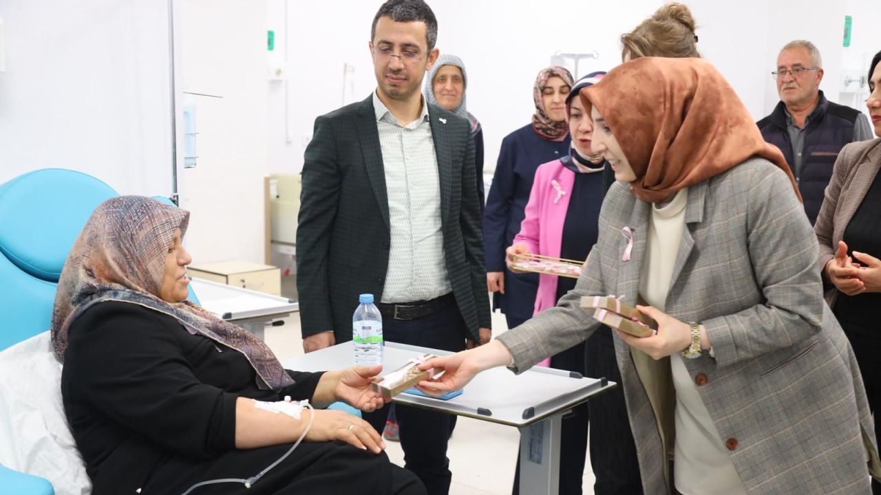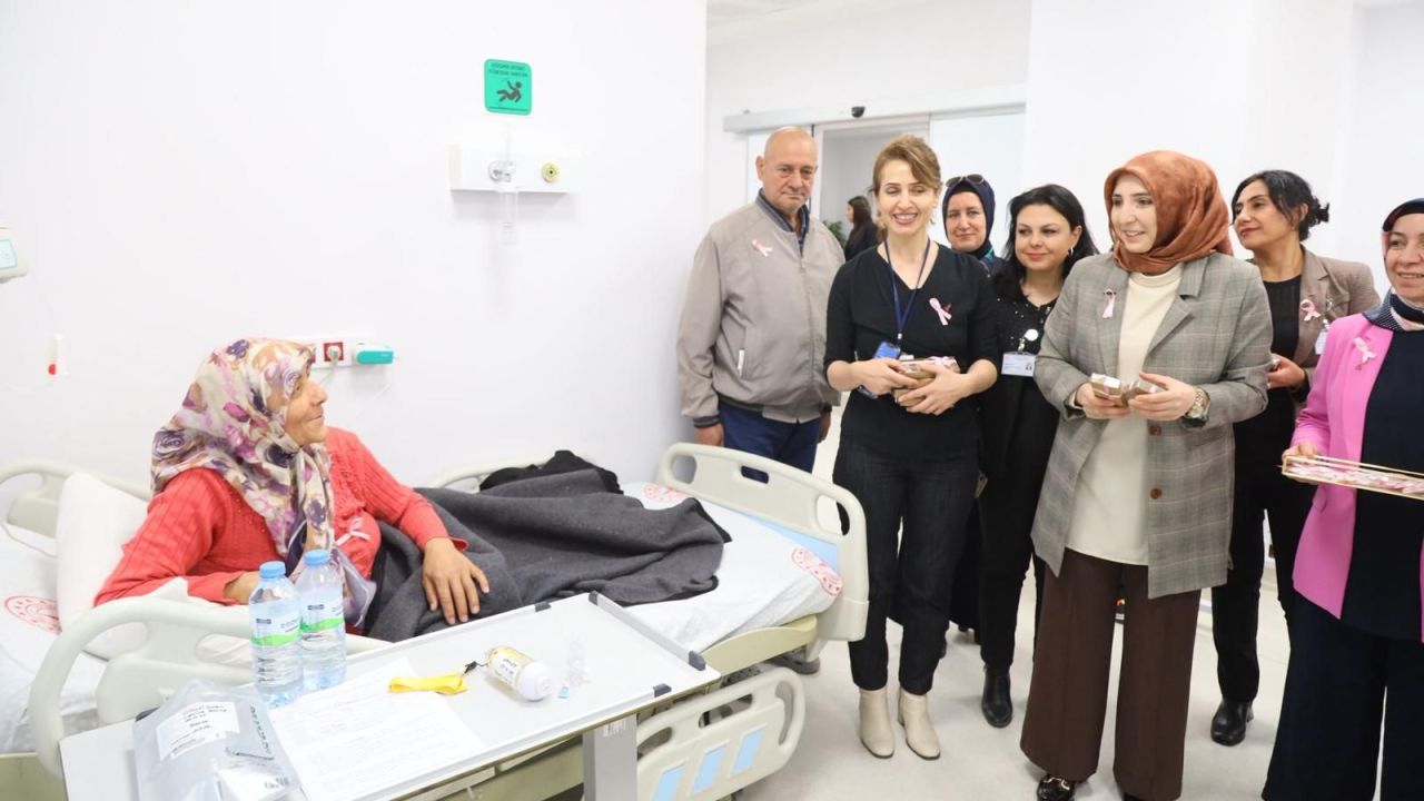 Aksaray Belediye Başkanı Dr. Evren Dinçer'in eşi Merve Dinçer, Ekim ayı Meme Kanseri Farkındalık Ayı kapsamında Aksaray Eğitim ve Araştırma Hastanesi (AEAH) Kemoterapi Ünitesi'nde tedavi gören hastaları ziyaret etti. Ziyarete AEAH Başhekimi Dr. Ramazan Bülbül, Onkoloji Uzmanı Doç. Dr. Yakup Düzköprü ve hastane yöneticileri de eşlik etti.