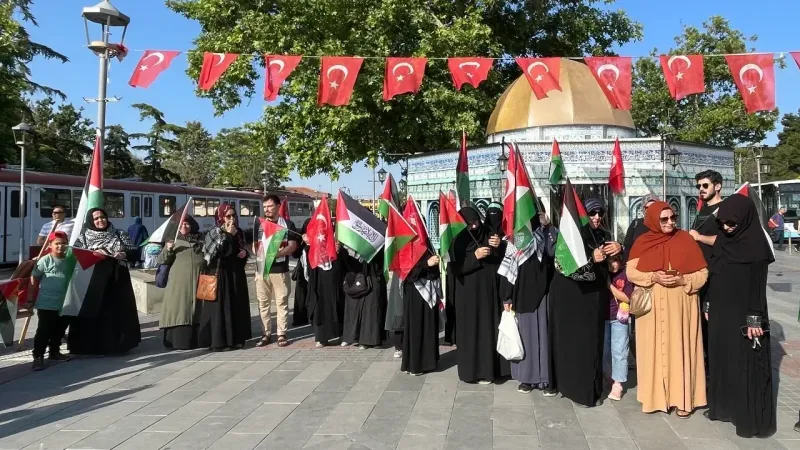 Kültür Park Meydanı'nda toplanan kadınlar, İsrail'in Gazze'ye yönelik saldırılarını lanetlemek ve "Küresel Gazze Yürüyüşü"ne destek vermek için bir gösteri düzenledi. Göstericiler, tekbir getirerek "Vicdanın sesini duy harekete geç", "Ölümü gözümüzde büyütmüşüz, ölüm Gazze'de çocuk işi" yazılı pankartlar taşıdı.