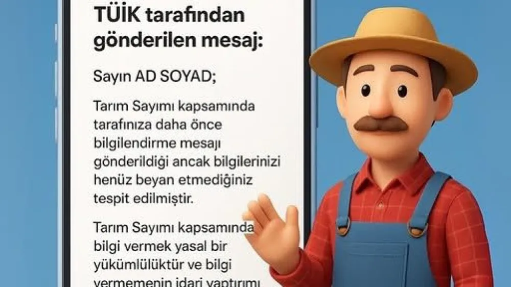 Yapılan açıklamada, Tarım Sayımı kapsamında talep edilen bilgilerin sağlanmasının, 5429 sayılı Türkiye İstatistik Kanunu uyarınca zorunlu olduğu hatırlatıldı. Bilgi vermeyen üreticiler hakkında idari yaptırımların uygulanabileceği belirtildi.