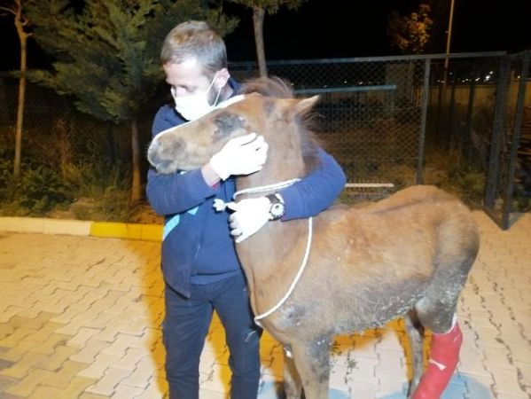 sarılmaları dikkat çekti. Yaralı tay belediye ekiplerince Hayvan Bakım ve