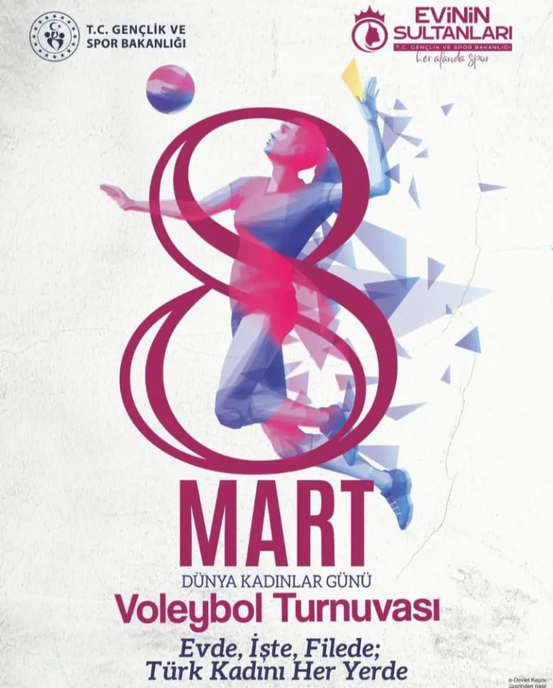 T.C. Gençlik ve Spor Bakanlığı tarafından programa alınan ve ilimiz Gençlik ve Spor Müdürlüğü tarafından 8 Mart Dünya Kadınlar Günü nedeniyle voleybol turnuvası düzenlendi. “Evinin Sultanları, Evde İşte, Filede Türk Kadını Her Yerde” sloganı ile yola çıkılan bu organizasyon ilimizde de voleybol turnuvası olarak gerçekleştirilmektedir.