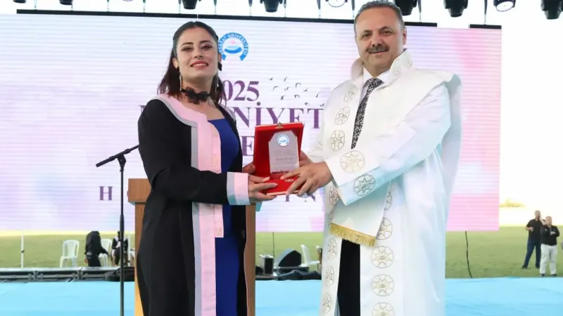 Fen-Edebiyat Fakültesi öğrencisi Beyza Ertuğrul, üniversite birincisi olarak yaptığı konuşmada, Gazze’de yaşananlara dikkat çekerek mezuniyet sevincini anlamlı bir mesajla tamamladı: “Her kelimemiz bir yarayı sarabilir.”