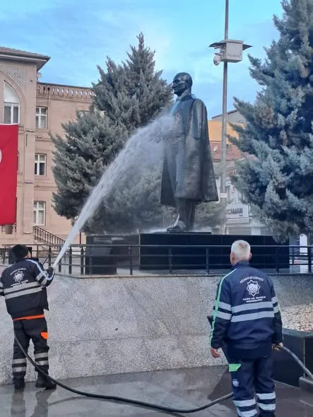 Aksaray’ın önemli meydanları da temizlik çalışmalarından nasibini aldı. Vatandaşların yoğun olarak kullandığı alanlar detaylı şekilde temizlenerek bayrama hazır hale getirildi.