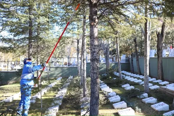 Aksaray Belediyesi, şehirdeki yeşil alanların korunması ve geliştirilmesi için çeşitli çalışmalar gerçekleştiriyor. Şehitlikteki ağaçlar da bu çalışmalar kapsamında bakım ve budamadan geçiriliyor.