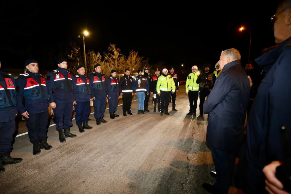 Aksaray Valisi Murat Duru, gece saatlerinde polis ve jandarma ekiplerini görev başında ziyaret ederek denetimlerde bulundu. Şehrin güvenliğini sağlamak amacıyla oluşturulan uygulama noktasında gerçekleşen ziyarette, görevli personele moral verilmesi hedeflendi.