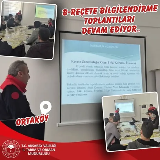 Aksaray İl Tarım ve Orman Müdürlüğü tarafından B-Reçete uygulamasına yönelik bilgilendirme toplantıları düzenlenmeye devam ediyor. Çalışmalar kapsamında üreticilere ve ilgili paydaşlara bilgilendirmeler yapılıyor.