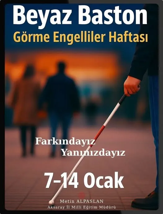 Aksaray İl Milli Eğitim Müdürü Metin Alpaslan tarafından yayımlanan farkındalık mesajında, “Farkındayız, Yanınızdayız” vurgusu yapıldı. Alpaslan, tüm bireylerin eşit yaşam hakkına sahip olduğunu hatırlatarak, görme engelli öğrencilere yönelik eğitimde fırsat eşitliğini destekleyen çalışmaların kararlılıkla sürdürüldüğünü ifade etti.