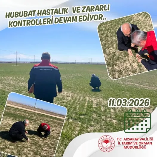 Aksaray’da hububat üretim alanlarında hastalık ve zararlılara karşı kontroller devam ediyor. Tarım arazilerinde yürütülen çalışmalar kapsamında ekili alanlar düzenli olarak inceleniyor.