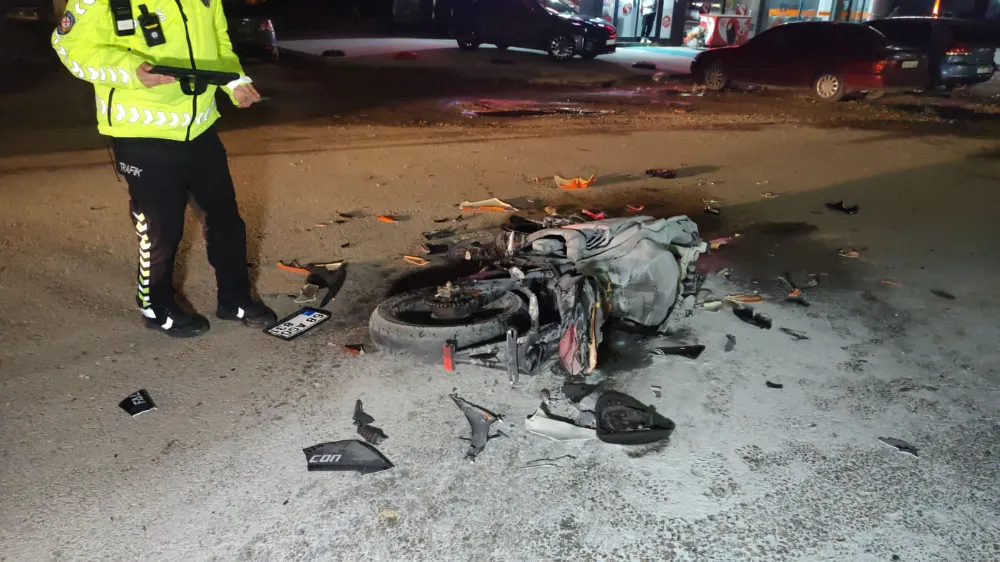 İddiaya göre 68 plakalı motosikletiyle seyir halinde olan B.K. (25), karşı şeritten gelerek yolun karşısına park etmek isteyen 31 plakalı otomobil sürücüsü R.Y. (21)’nin kullandığı araca yandan çarptı. Çarpışmanın şiddetiyle motosiklet kısa sürede alev aldı. Kazada motosiklet sürücüsü yaralandı.