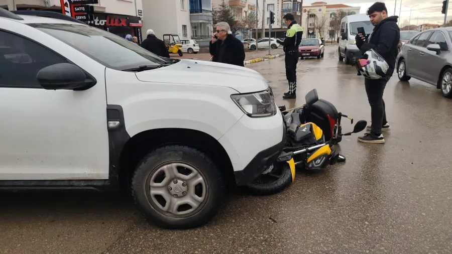 Aksaray’da Selçuk Bulvarı ile Ziraat Caddesi kavşağında meydana gelen trafik kazasında, otomobil ile motosiklet çarpıştı. 68 plakalı araçların karıştığı kazada motosiklet, çarpışmanın etkisiyle otomobilin altına girdi. Şans eseri kazada kimse yaralanmadı.