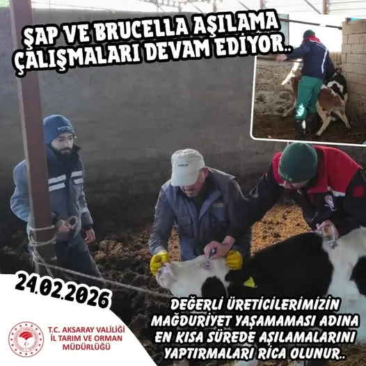 Aksaray genelinde Şap ve Brucella aşılama çalışmalarının belirlenen program doğrultusunda devam edeceği kaydedildi. Hayvancılık faaliyetlerinin sağlıklı şekilde sürdürülmesi için aşılamaların önemine vurgu yapıldı.