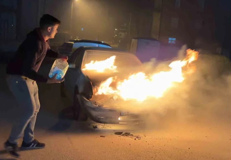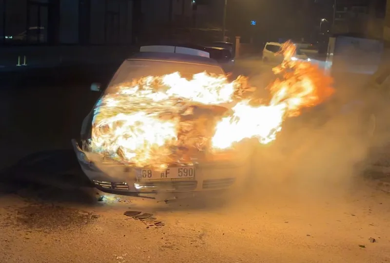 Aksaray’da motor kısmından yanmaya başlayan otomobil bir anda alevlere teslim olurken, araç sürücüsü ve arkadaşı alevlere antifriz ve antifrizli cam suyu dökerek müdahale etti. Antifriz dökülen aracın kaputu daha da çok alevlenirken, yangın itfaiye ekiplerince söndürüldü.