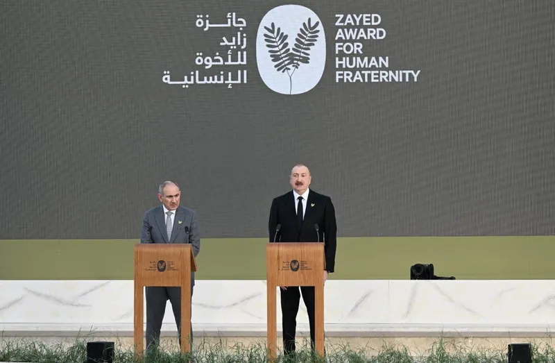 Azerbaycan Cumhurbaşkanı İlham Aliyev ve Ermenistan Başbakanı Nikol Paşinyan, Birleşik Arap Emirlikleri'nin başkenti Abu Dabi'de düzenlenen törende "2026 Zayed İnsan Kardeşliği Ödülü"ne layık görüldü. İki lider, uzun yıllar süren çatışmanın ardından inşa edilen barış ortamının bu önemli takdiriyle onurlandırıldı.