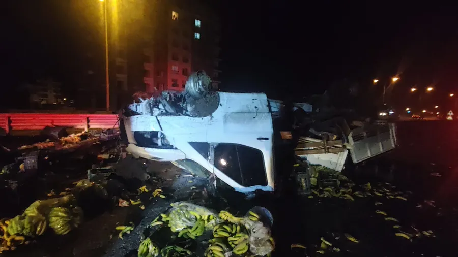 Olay, gece geç saatlerde Aratol Kavşağı’nda yaşandı. Edinilen bilgilere göre, henüz nedeni belirlenemeyen kazada, 42 plakalı bir otomobil ile 50 plakalı ticari kamyonet çarpıştı. Çarpmanın etkisiyle kamyonet takla atarak bariyerleri aştı ve devrildi. Otomobil ise bariyerlere çarparak ancak durabildi.