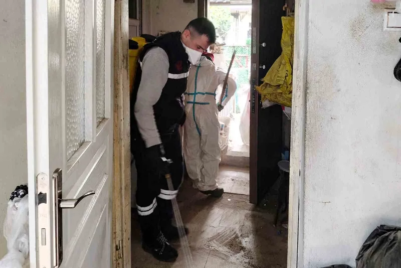 Temizlik işlemlerinin tamamlanmasının ardından, Sağlık İşleri Müdürlüğü ekipleri devreye girdi. Evlerde ilaçlama ve dezenfeksiyon işlemleri titizlikle gerçekleştirilerek, alanların yeniden sağlıklı ve güvenli bir şekilde kullanılabilmesi sağlandı.