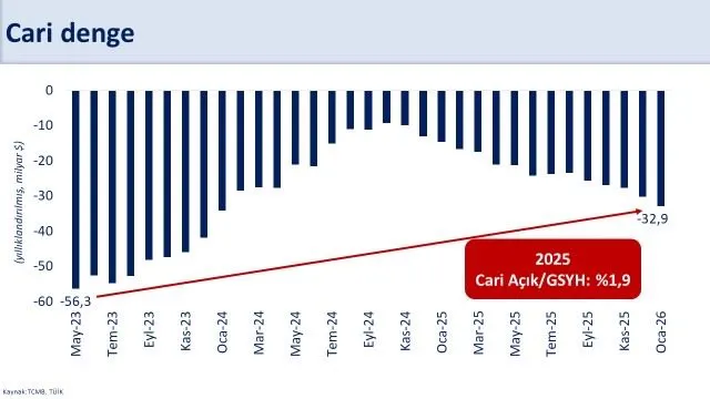 Şimşek, yıllık cari açığın ocak ayında 32,9 milyar dolar olduğunu hatırlatarak, güçlenen makroekonomik temeller sayesinde bu olası artışın yönetilebilir olduğunu vurguladı. Uygulanan programla dış finansman ihtiyacı ve borçluluğun azaldığını, ekonominin şoklara karşı dayanıklılığının ise arttığını belirtti.