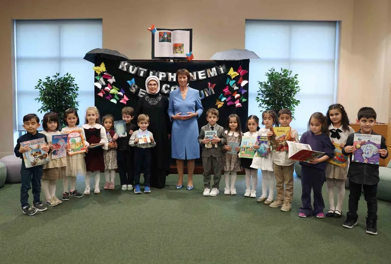 Cumhurbaşkanı Recep Tayyip Erdoğan'ın eşi Emine Erdoğan, Türkiye'ye resmi ziyaret gerçekleştiren Almanya Başbakanı Friedrich Merz'in eşi Charlotte Merz ile Cumhurbaşkanlığı Millet Kütüphanesi'ni ziyaret etti. Emine Erdoğan, Charlotte Merz'i kütüphaneye gelişinde kapıda samimi şekilde karşıladı.