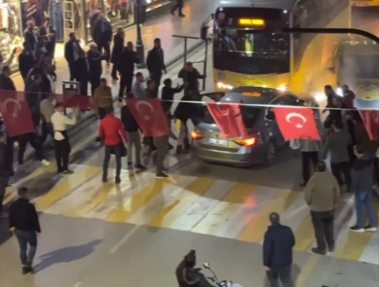 Olay yerine gelen esnaf ve vatandaşlar, sürücüye öfkelenerek ellerine geçirdikleri sopa ve demirlerle araca saldırdı. Tekme atarak araç camlarını kırmaya çalışan kalabalık, bir süre sonra sürücüyü tekme tokat darbetti. Polis ekiplerinin gelmesiyle şahıs bırakılırken, yaşananlar anbean vatandaşların cep telefonu kameralarınca kaydedildi.