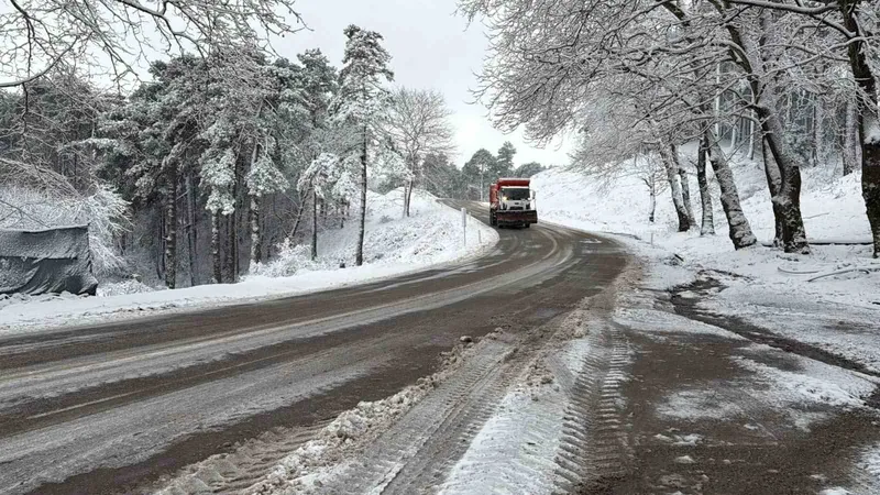 Balıkesir’in Edremit ve Havran ilçeleri ile Çanakkale’nin Yenice ilçeleri arasındaki Kazdağları yolunda, etkili olan kar yağışı nedeniyle ulaşım kontrollü olarak sağlanıyor.