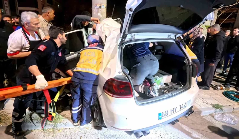 Direğe yan kısmıyla çarpan otomobil adeta direğe saplanırken, araç sürücüsü ve yolcu Tuğçe F. (22) araç içerisinde sıkıştı. Çevredeki vatandaşların ihbarı üzerine olay yerine polis, itfaiye ve sağlık ekipleri sevk edildi. Ekipler, araçtan çıkardıkları yaralıları ambulanslara taşıdı.