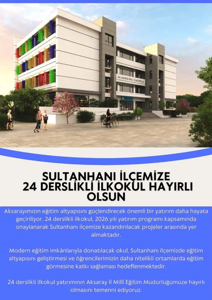 Planlanan ilkokul projesi, 2026 yılı yatırım programı kapsamında onaylanarak hayata geçirilecek projeler arasında yer aldı. Böylece Sultanhanı ilçesinde eğitim alanında önemli bir adım atılmış olacak.