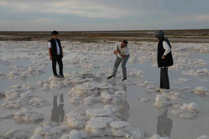 Tuz Gölü'nde suların çekilmesiyle ortaya çıkan ilginç tuz kütleleri, bölgeyi ziyaret edenlerin ve fotoğraf meraklılarının yeni ilgi odağı oldu. Özellikle Aksaray'ın Eskil ilçesi yakınlarında görülen bu doğal yapılar, sosyal medyada paylaşılmaya başladıkça göle gelen ziyaretçi sayısında da artış yaşanıyor.