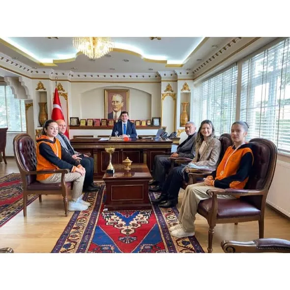 İl birincisi olan Ayşe Sena Oğuz ve Elif Ecrin Ata, Ortaköy Kaymakamı Sayın Ahmet Karatepe’yi makamında ziyaret etti. Gerçekleşen ziyarette öğrenciler, elde ettikleri başarıyı paylaştı.