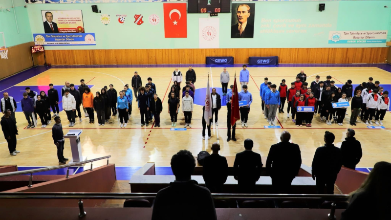Müsabakaların açılış töreni, Atatürk Spor Salonu’nda gerçekleştirildi. Törene sporcuların yanı sıra antrenörler, hakemler ve okul yetkilileri katıldı.
