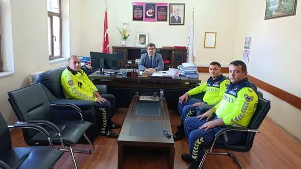 Müdür Deniz Arslan, nazik ziyaretlerinden dolayı jandarma ve emniyet mensuplarına teşekkür etti. Görüşme sırasında, ilçedeki eğitim faaliyetleri üzerine samimi bir sohbet gerçekleştirildi.