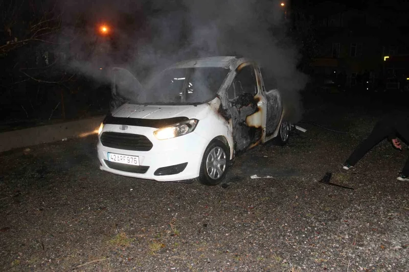Konya'nın Beyşehir ilçesinde, Hacıakif Mahallesi 40694 numaralı sokakta gece yarısı meydana gelen olayda, bir aracın ateşe verildiği ihbarı üzerine bölgeye itfaiye, polis ve sağlık ekipleri sevk edildi.
