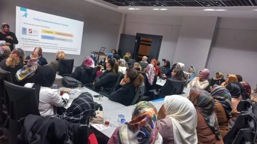 Uzmanlar tarafından yapılan sunumlarda, kadınların kendi kendine muayene yapma yöntemleri anlatıldı ve hangi belirtilerde hekime başvurulması gerektiği detaylı şekilde açıklandı.