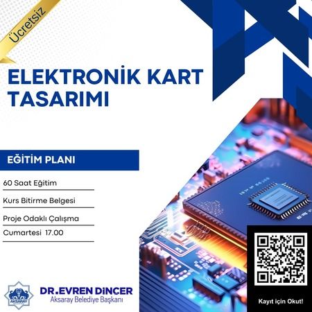 Elektronik Kart Tasarımı kursunun amacı ise kullanıcıya bilgisayarlı elektronik kart çizim yeteneği kazandırarak elektrik-elektronik alanında her türlü devre çizimi, simülasyonu ve analizini yapabilmelerini sağlamaktır. 60 saat sürecek olan Elektronik Kart Tasarım kursu Cumartesi günleri saat17.00’da verilecek.