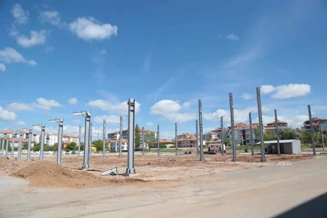 geçildi. Pazar alanında çelik çatı konstrüksiyonların yapılacağı alanda direkler dikildi.
