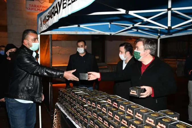 Aksaray Belediyesi, her kandilde olduğu gibi Miraç Kandili gecesinde vatandaşlara 3 Bin 500 kandil simidi dağıttı.