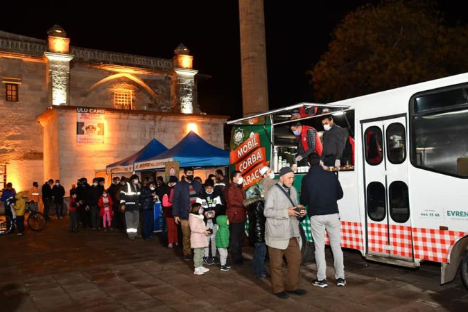Vatandaşlara kandil simidinin yanında sıcak çorba ve lokma tatlısı da ikram edildi. Vatandaşlar, geleneksel hale gelen kandil simidine yoğun ilgi gösterdiler. Cami meydanına kurulan standa vatandaşlara koruyucu maske de dağıtıldı.