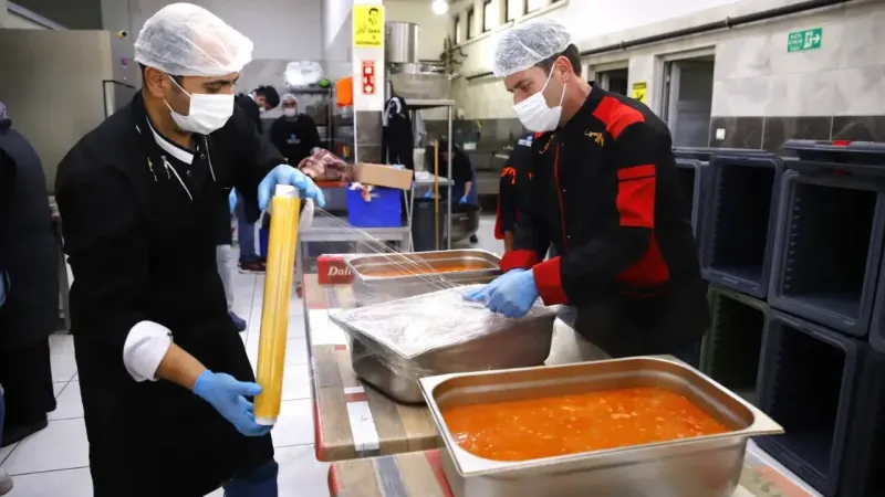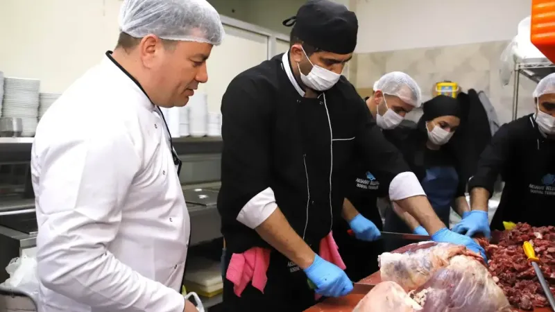 Aksaray Belediyesi, Ramazan ayı hazırlıklarını günler öncesinden tamamlamıştı. Ramazan'ın ilk günlerinden itibaren sosyal yardım ve destek programlarını planlı bir şekilde yürüten belediye, bünyesindeki yemekhane ve mutfakta iftar hazırlıklarını yoğun bir şekilde sürdürüyor.Belediye Başkanı Dr. Evren Dinçer, Ramazan ayı boyunca iftar hazırlıklarının yapıldığı belediye mutfağını ziyaret ederek yetkililerden bilgi aldı. Başkan Dinçer, mutfakta iftar yemeklerinin hazırlık sürecine de yardım etti. Aksaray Belediyesi yemekhanesinde günlük olarak 4 çeşit yemek hazırlandığını ve bu yemeklerin 4 bin 500 kişiye ulaştırıldığını belirtti.Başkan Dinçer, konu ile ilgili basın mensuplarına yaptığı açıklamada; “Kurmuş olduğumuz iftar çadırlarında günlük yaklaşık 2 bin 500- 3 bin vatandaşımıza sıcak yemek dağıtımı yapıyoruz. Ayrıca iftar çadırlarımıza gelemeyen ve toplu yemek organizasyonlarına katılamayan 1.500 vatandaşımızın evlerine sıcak yemek servisi yapıyoruz. İftar yemeklerini kendi mutfağımızda özenle hazırlıyoruz” dedi.Sıcak yemek servisi sadece Ramazan ayına özel olmadığını vurgulayan Dinçer, “12 ay boyunca evlerinde yemek yapamayan yaşlı ve engelli ailelerimize yemek servisi sunuyoruz. Ramazan ayında bu sayı artırarak 1.500’e çıkarttık. Bunların yanı sıra, sosyal yardımlar kapsamında ihtiyaç sahiplerine sosyal destek paketlerimizi ve gıda kolilerimizi adreslerine ulaştırıyoruz. Her zaman halkımızın yanında olmaya devam edeceğiz” şeklinde konuştu.Başkan Dinçer, son olarak Ramazan ayının ülkemize ve tüm İslam dünyasına barış, huzur ve sağlık getirmesini dileyerek Aksaraylıların Ramazanını tebrik etti.