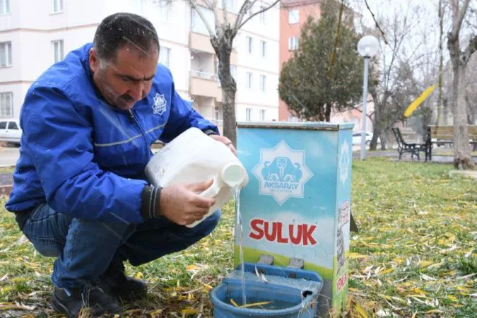 Aksaray Belediyesi Veteriner İşleri Müdürlüğü ekipleri, hayvan dostu belediyecilik örneği sergiliyor. Ekipler sokak hayvanların doğada kolay bulacakları noktalara yem ve mama kutularına günlük ihtiyaçlarını karşılayabilecekleri ölçüde sürekli olarak yem ve mama bırakıyor.