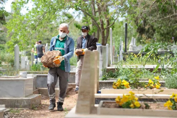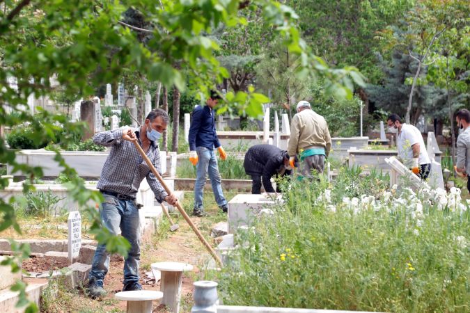 Tam kapanma döneminde şehirde bulunan kabristanlıkların bakımını ihmal etmeyen Temizlik İşleri