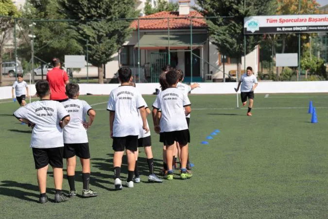 Çocukların zihinsel ve bedensel gelişimleri ile sosyalleşmelerine katkı sunmak ve ayrıca yeteneklerini ortaya çıkarmak amacıyla sunulan yaz spor okullarına ilgi bu yıl yoğun oldu. Yaz spor okulunda verilen eğitimlerde çocuklar spor yaparken hem eğleniyor hemde öğreniyorlar. Hafta içi her gün iki farklı spor tesisinde eş zamanlı olarak başlayan yaz spor okullarında 600’ü futbol, 150’si tenis olmak üzere 750 öğrenci spor eğitimi alıyor. Belediye Başkanı Dr. Evren Dinçer, çocukların serbest zamanını en iyi şekilde değerlendirmeleri için yaz spor okullarının bir fırsat olduğunu dile getirerek “Her yıl olduğu gibi bu yılda Yaz Spor Okullarımız yoğun ilgi görüyor. Tesislerimizde eğitimlere katılım sağlayan çocuklarımız spor yaparken vakitlerini verimli ve kaliteli geçiriyor. Bunun yanında ilgi ve yeteneklerini de keşfetme imkânı bulunuyor. Yaz spor okullarımızda bu yıl olduğu gibi gelecek yıllarda çocuklarımızı ağırlamayı sürdüreceğiz” dedi.