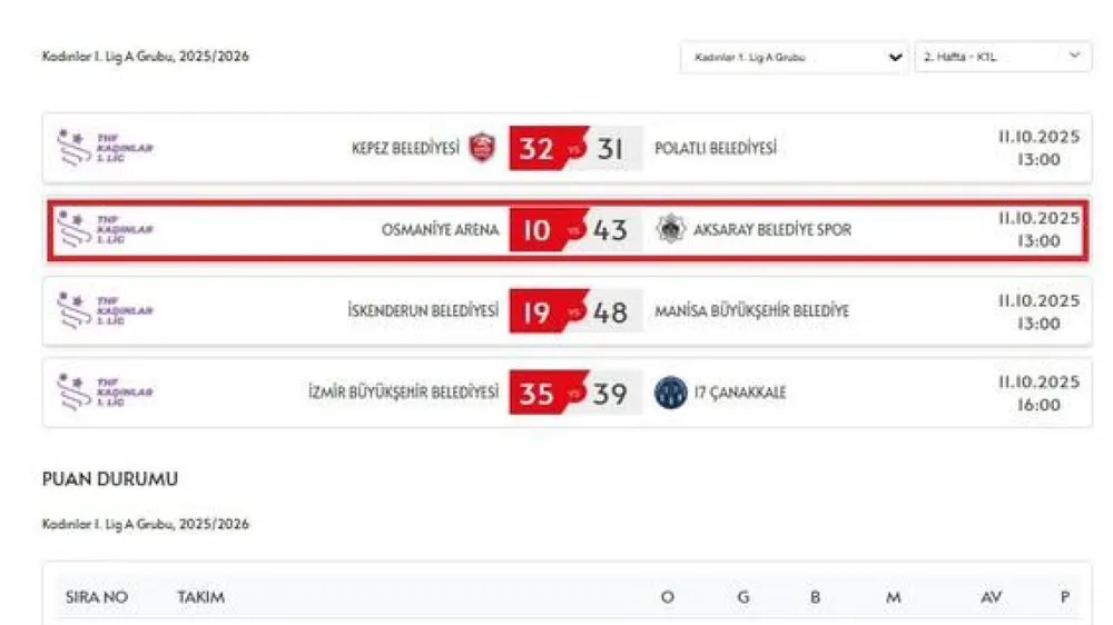 Ligin ikinci haftasında oynanan karşılaşmalar sonunda takımlar puan durumunda yeni sıralamalar elde etti. Aksaray ekibi, sahadaki başarılı performansıyla dikkat çekti.