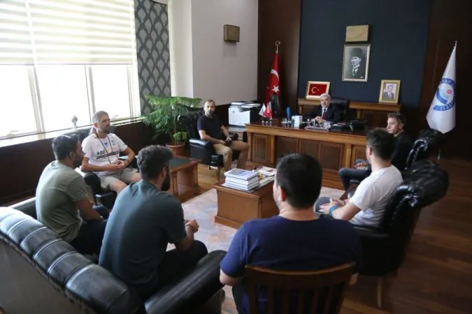ASÜ Spor ve Sağlık Alanında İhtisaslaşma Koordinatörlüğü yöneticileri ile kurs eğitmenleri Rektör Prof. Dr. Yusuf Şahin’i ziyaret etti ve süren çalışmalar hakkında bilgiler verdi. Yamaç Paraşütünün Aksaray’ın coğrafi yapısına en uygun spor dallarından birisi olduğunu ve son üç yıldır çeşitli etkinlikler yaptıklarını söyleyen Rektör Şahin, ilginin her yıl biraz daha artığını vurguladı. 2020’den bu yana gerek şampiyonlar ve uçuş etkinlikleri gerekse kurslar düzenlediklerini anımsatan Prof. Şahin, kısa süre önce de Türkiye’nin onaylı ilk Yamaç Paraşütü Test Merkezi’ni ASÜ’ye kurduklarını söyledi. Bu merkezle birlikte Aksaray’ın ilgili branşın çekim merkezi olma yolunda kararlı adımlarla ilerlediğinden söz eden Şahin, katkı sunan herkese teşekkür etti. Ziyarete ASÜ Spor ve Sağlık Alanında İhtisaslaşma Koordinatörü Öğr. Gör. Dr. Okan Kamiş, Koordinatörlük Eğitim Sorumlusu Öğr. Gör. Dr. Ali Rıza Atıcı, Türkiye Hava Sporları Federasyonu Asbaşkanı Abdullah Kahraman ile Yamaç Paraşütü Öğretmeni Pilotlar Ali Zaimoğlu, Faruk Karaoğlan, Şenol Üstünel ve Kerim Sarıgül katıldı.