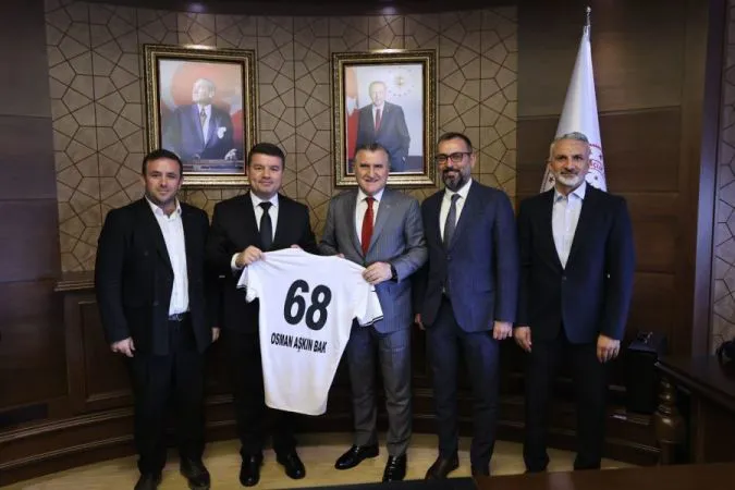 Aksaray Valisi Hamza Aydoğdu, AK Parti Milletvekilleri Cengiz Aydoğdu ve Hüseyin Altınsoy, Belediye Başkanı Dr. Evren Dinçer AK Parti Aksaray İl Başkanı Hamza Aktürk ile birlikte, Gençlik ve Spor Bakanı Osman Aşkın Bak'ı makamında ziyaret ederek, şampiyon takımımızın formasını hediye etti.