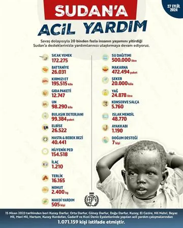 Aynı zamanda Sudan'da yaşanan çatışmalar sonucunda 20 binden fazla insanın hayatını kaybettiği bölgelerde de Aksaray İHH’nın yardımları hız kesmeden devam ediyor. Kurum, Sudan’a yapılan yardımların bölgeye ulaştırılması için bağışçıların desteklerine ihtiyaç duyuyor.