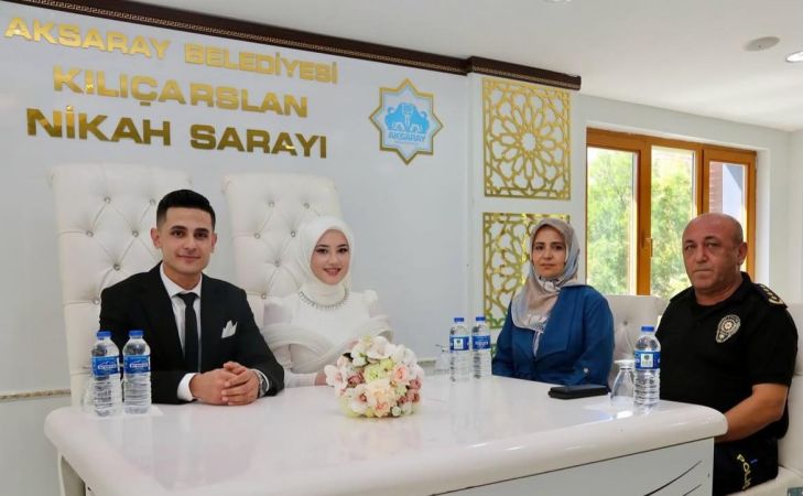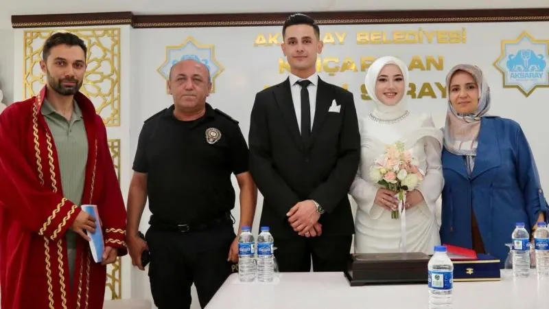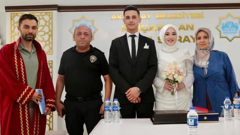 Aksaray Emniyet Müdürlüğü kadrosunda görev yapan Polis Memuru İbrahim Kökoçak’ın nikah törenine katılan İl Emniyet Müdürü Bekir Demir, bu özel günde teşkilat mensubunu yalnız bırakmadı.