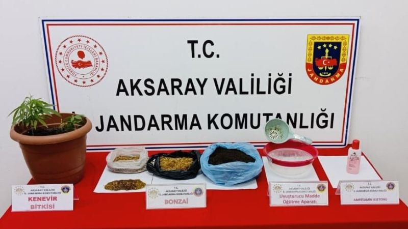 Şahısların bulunduğu adrese düzenlenen operasyonda, 1863 gram sentetik cannobinoid bonzai, 78 gram aseton sıvısı, 2 kök kenevir bitkisi ve 2 adet uyuşturucu madde öğütme aparatı ele geçirildi.
