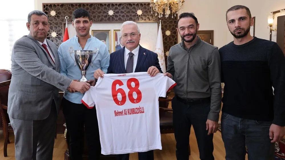 Kupayı ve Forma Hediyesini Takdim Ettiler Ziyarette kulüp başkanı Mehmet Bekmezci, şampiyonluk kupasını ve üzerinde Vali Kumbuzoğlu’nun isminin yazdığı formayı kendisine hediye etti. Bekmezci, Aksaray’ı en iyi şekilde temsil etmek için tüm takımla birlikte özveriyle çalıştıklarını vurguladı.