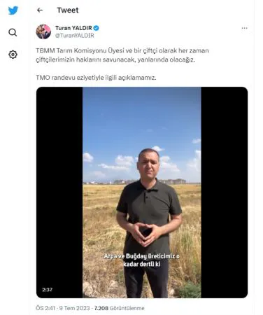 Aksaray İyi Parti Milletvekili Turan yaldır tarım şehri olan Aksaray'da hasadı yapılan buğday tarlasında açıklama yaparak yetkililere tarladan seslendi. Türkiye Büyük Millet Meclisi tarım Komisyonu üyesi ve bir çiftçi olarak her zaman çiftçilerin haklarını savunacağını ve yanlarında olacağını vurgulayan milletvekili yazdır hasat sezonunun başlaması ile birlikte TMO’da yaşanan randevu problemlerini dile getirerek Arpa ve buğday hasadın başlaması ile birlikte üreticilerimiz ilimiz Aksaray'da olduğu gibi ülkemiz her yöresinde TMO ile ilgili ürün teslim için randevu alamadıklarını ve mağdur durumda olduklarını ifade ediyor” dedi.