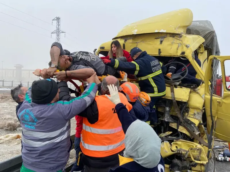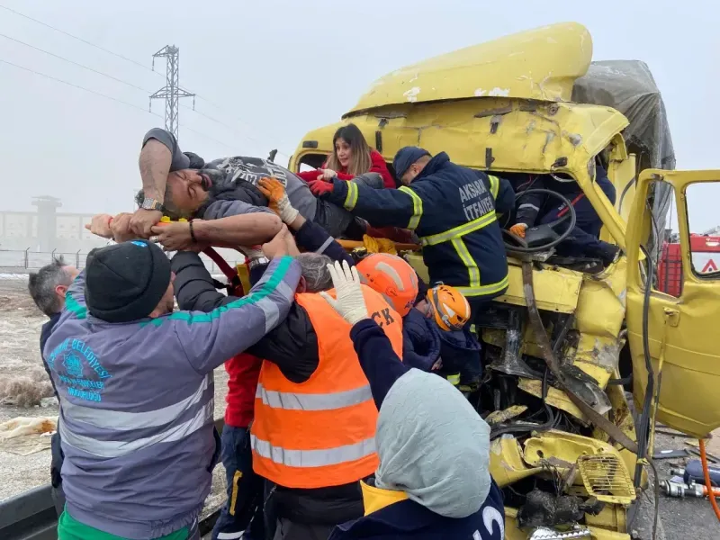 Aksaray Konya Karayolu, Ticaret Borsası Kavşağı’nda kamyonun kamyona arkadan çarpması sonucu meydana gelen trafik kazasında kamyonda sıkışan sürücü ağır yaralandı.