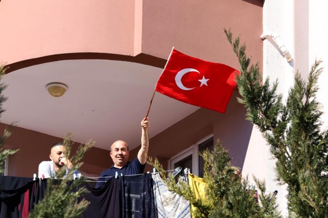 balkonlara çıkarak Türk Bayrakları açtı.